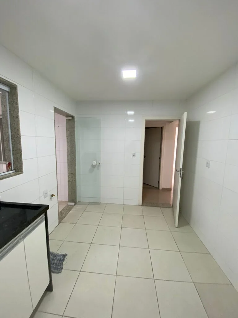 Sala, banheiro social, 3 quartos com varanda (1 suíte), cozinha e área descoberta. Prédio com porteiro eletrônico, garagem e elevador.