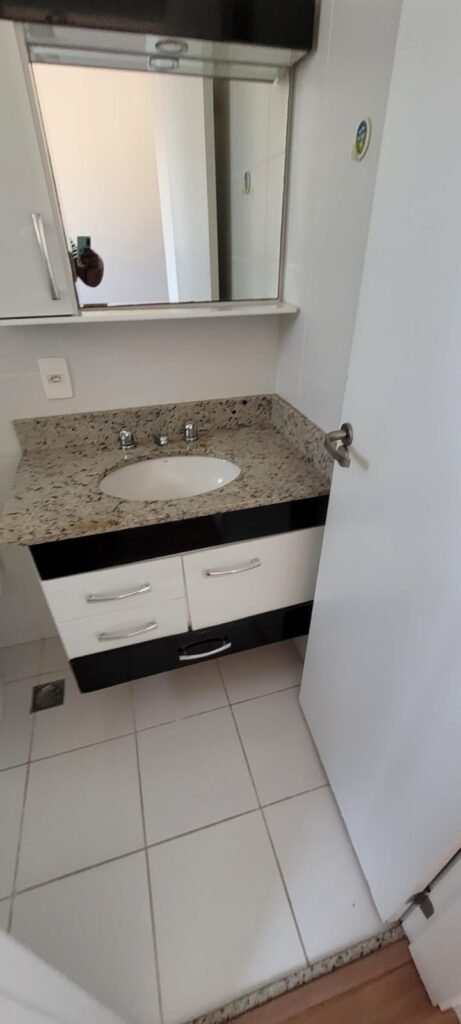 Sala com varanda, 2 quartos (1 suíte com com guarda roupa), banheiro social e cozinha modulada. Condominio com garagem , porteiro 24 horas, segurança, salão de festas, academia, piscina com borda infinita, quadra poliesportiva, área gourmet, playground e pergolado.
